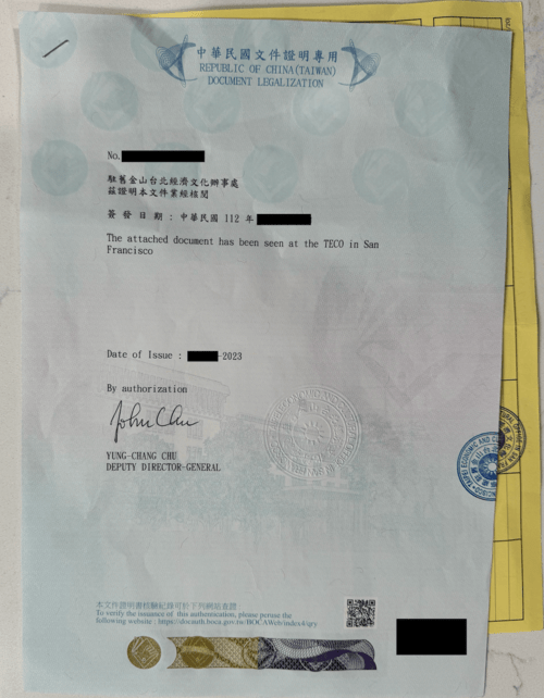 如果你有像我建議的,多申請幾張出生證明,TECO文件驗證可以跟美國護照申請同時進行。在美國護照申請送出的同時,我拿第二張出生證明,親自跑了一趟舊金山的 TECO。我去了才知道,其實文件驗證可以郵寄到 TECO 進行驗證,工作人員也表示建議用郵寄處理。
