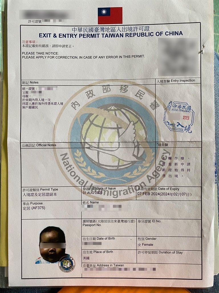 拿到 Step 4 的認證文件後,帶著文件我們就直接用美國護照飛回台灣了。一下飛機,我當天就跟老公一起去移民署申請定居證(小孩不用帶去)。